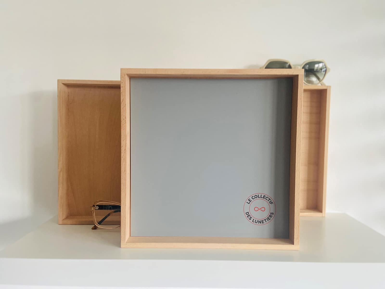 Une collaboration au naturel avec Le Collectif des Lunetiers sur la thématique du bois qui permet d’accompagner en boutique le client tout au long de son parcours en mettant en valeur les différents produits proposés.