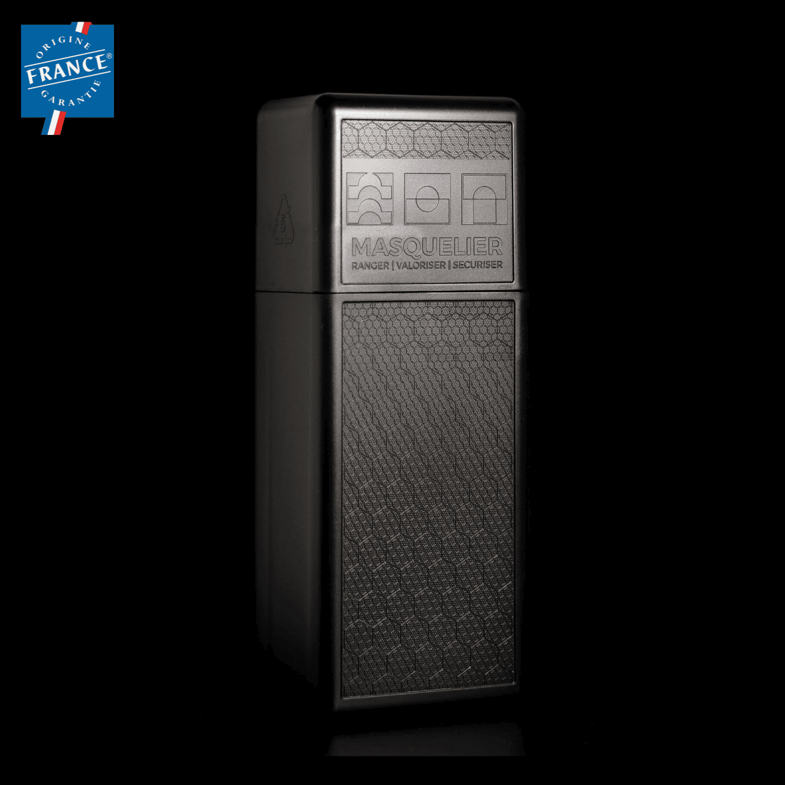 Robuste, fiable et durable, il accueille efficacement montures et accessoires en restant esthétique et écoresponsable grâce à sa matière recyclée et 100% recyclable.