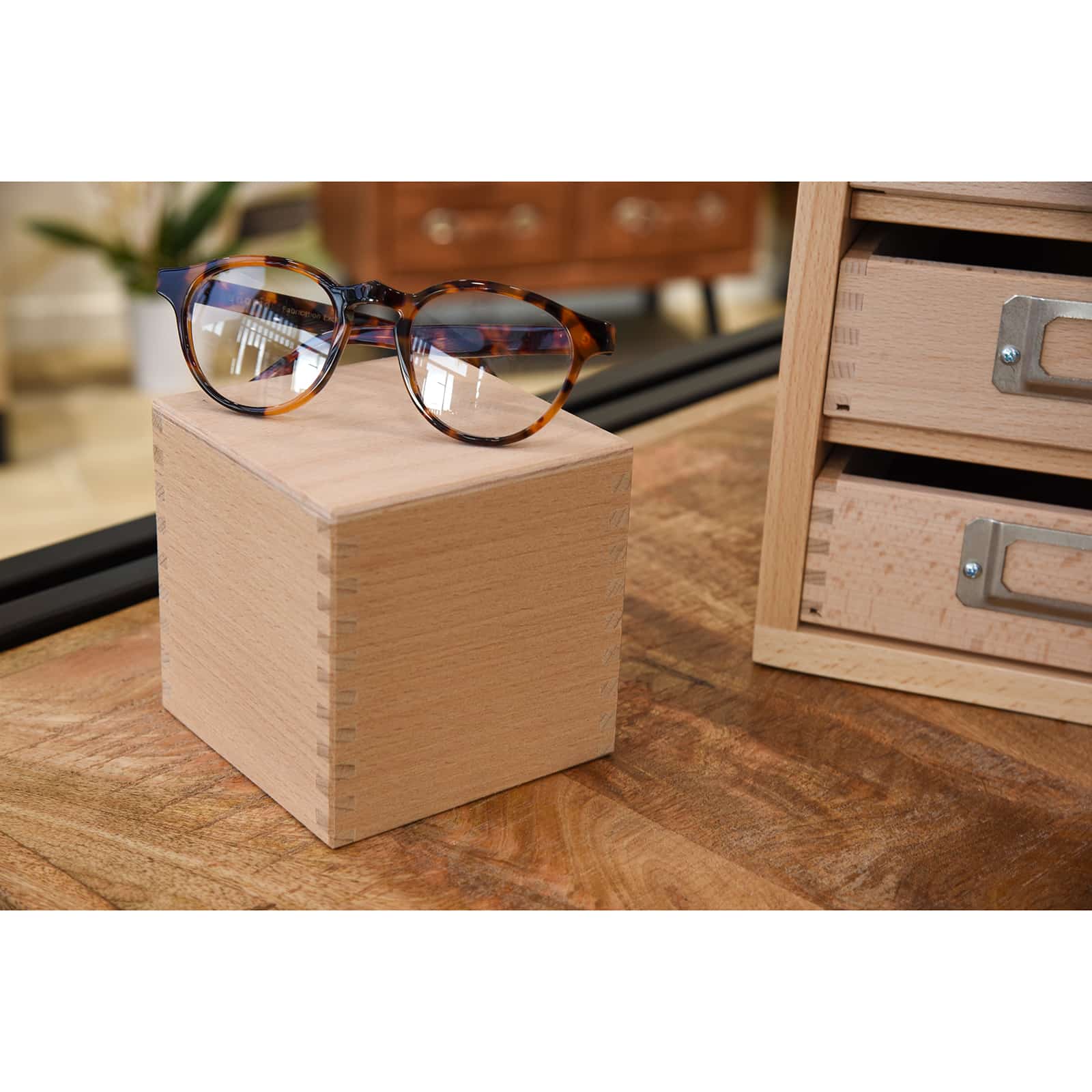 Cube de présentation bois massif hêtre naturel petit modèle