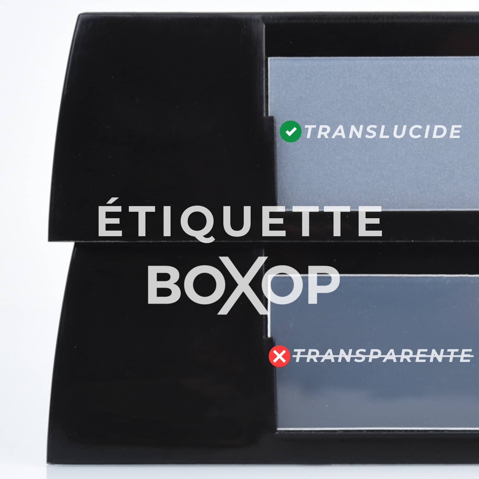 Vous avez la possibilité d’utiliser l’étiquette Boxop pour maintenir une étiquette papier ou bien écrire directement dessus. Toujours avec une fabrication 100% française, sa matière est résistante à tout type de solvant pour un nettoyage facile et une surface de travail toujours propre.