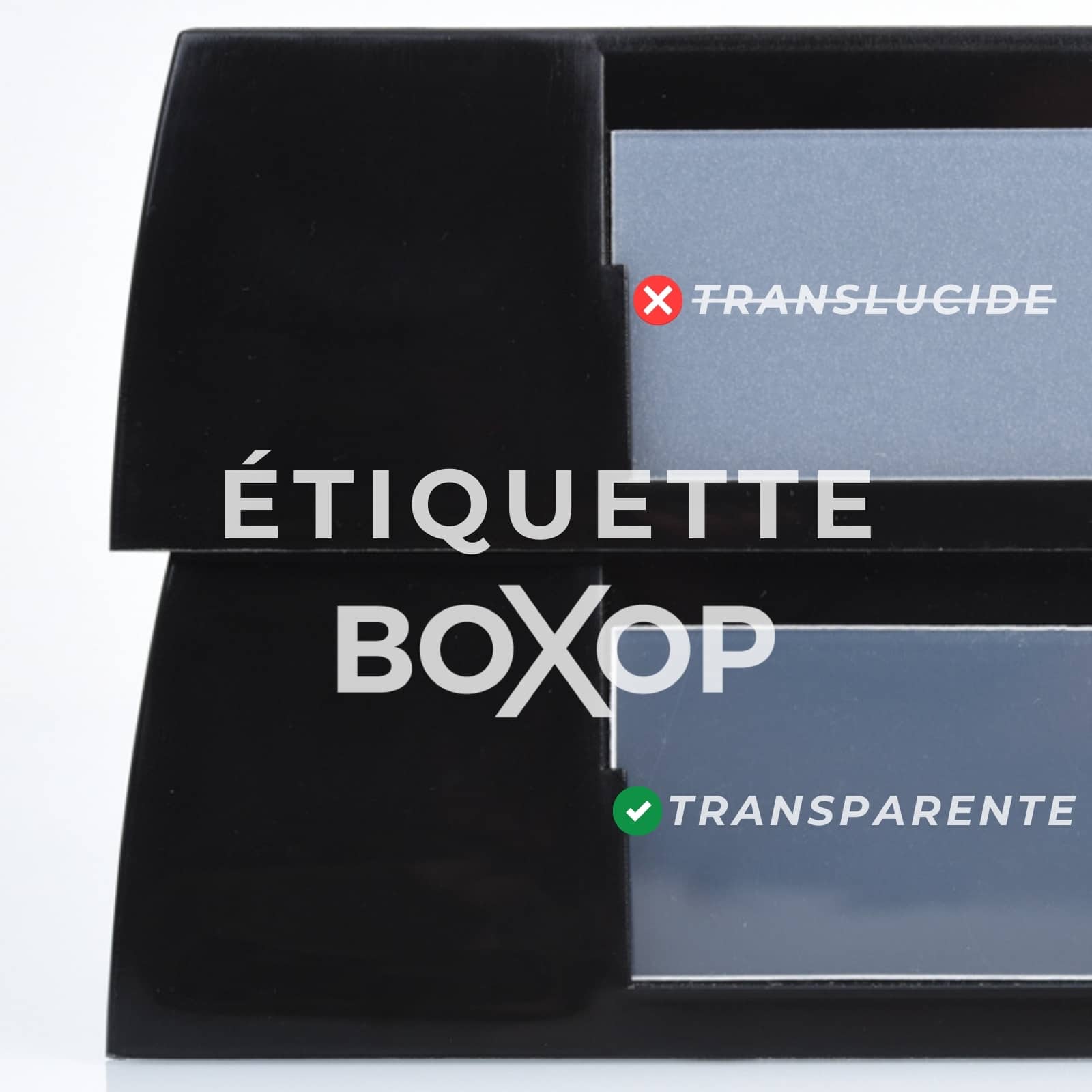 L’étiquette Boxop transparente est idéale si vous souhaitez glisser une étiquette papier car la lisibilité sera optimale. Toujours avec une fabrication 100% française, sa matière est lisse et sans aspérité pour une surface de travail toujours propre.