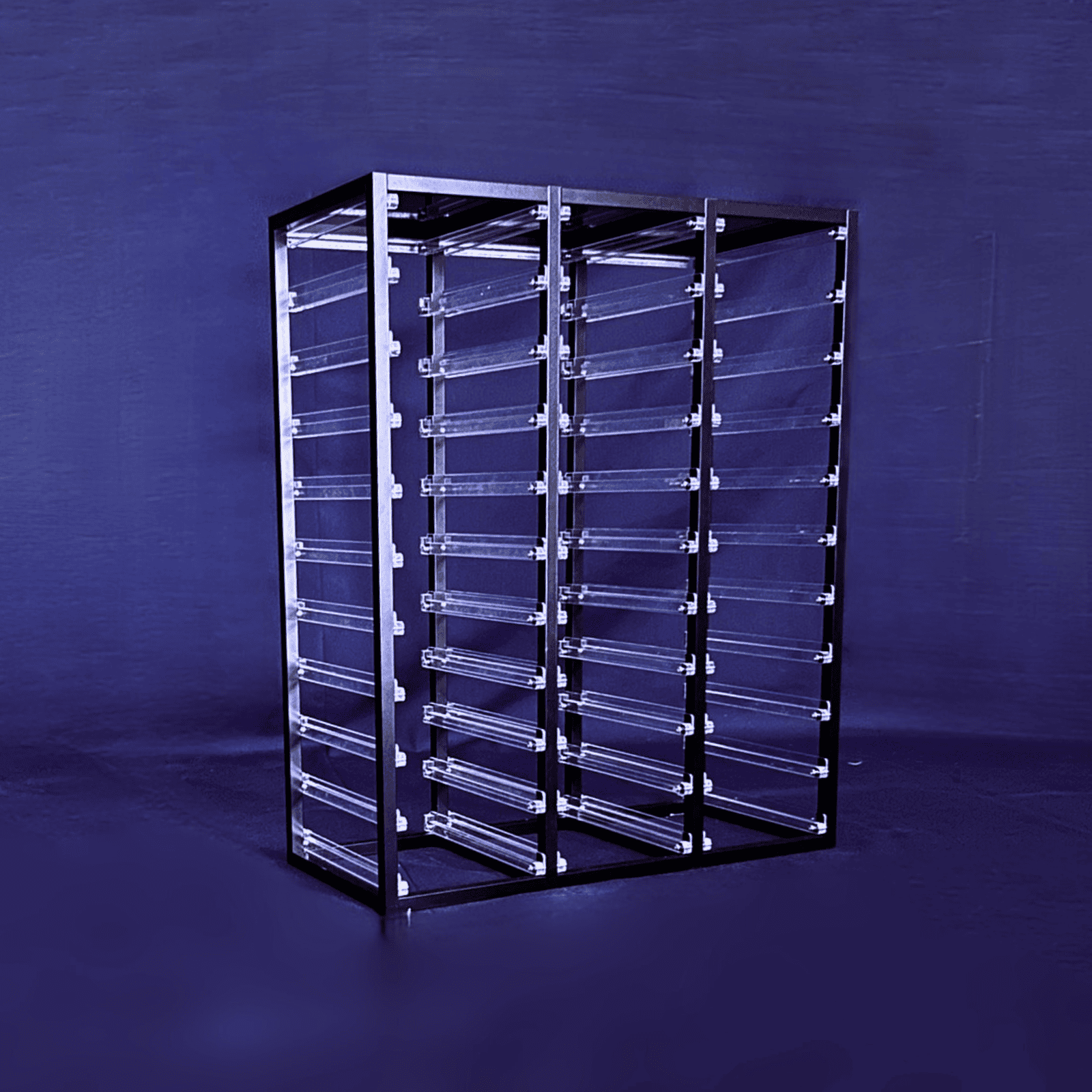 Conçu pour bousculer les standards, ce meuble est le tout premier à accueillir, dans un seul et même support, nos trois gammes de péniches : Boxop, BoxopWood et Starbox. Une solution encore inexistante sur le marché.