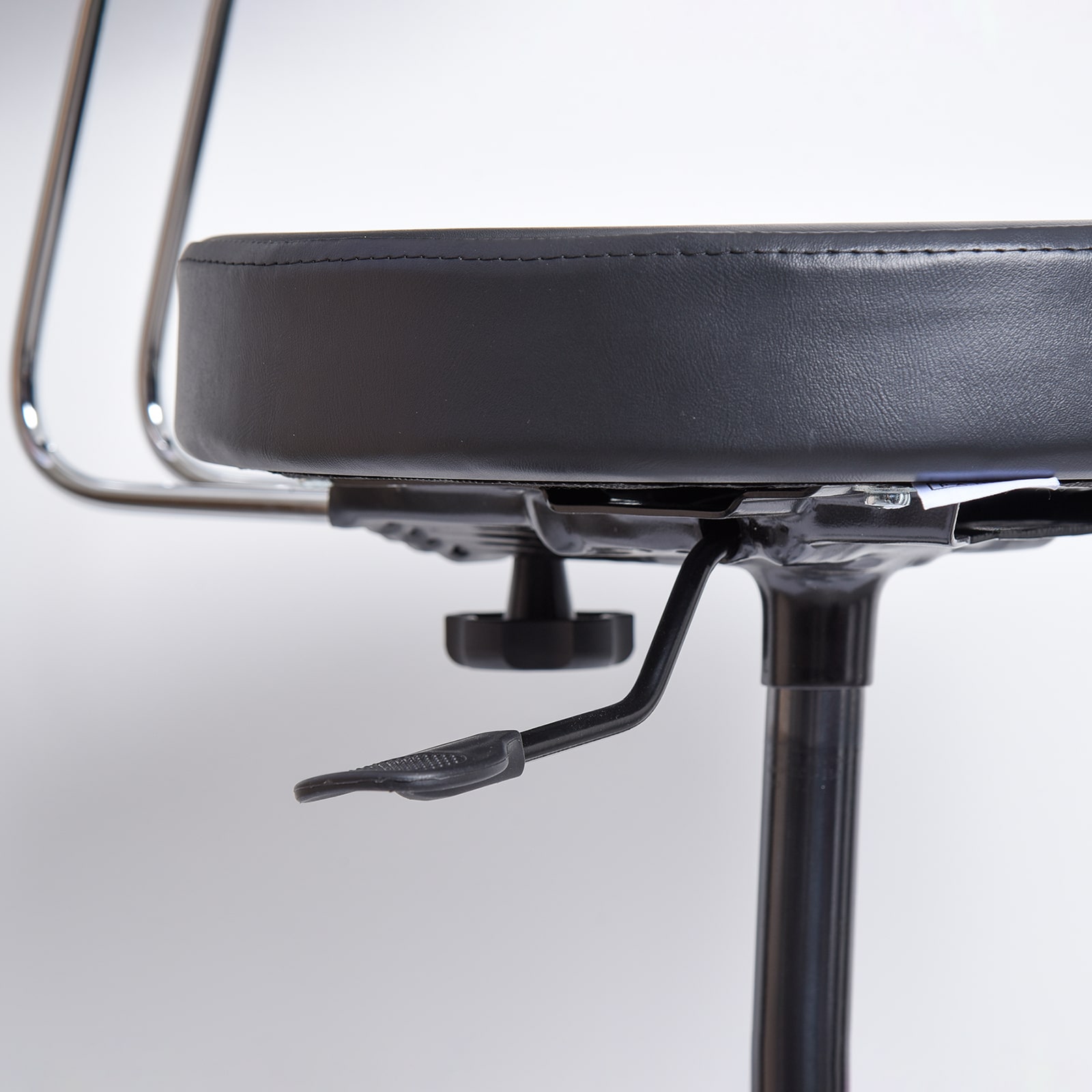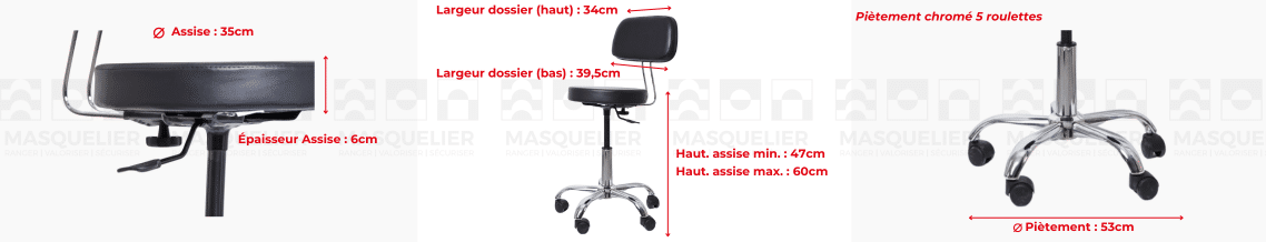 Ce siège à roulettes est équipé d’un dossier pour soutenir le dos et la colonne vertébrale de l’utilisateur. Il est souvent utilisé dans les environnements de travail tels que les magasins, les bureaux, les laboratoires, les salles de classe et les ateliers pour une meilleure flexibilité et mobilité. Il est conçu pour fournir un confort et un soutien approprié pour la posture assise. Il est particulièrement utile pour les tâches qui impliquent de se déplacer fréquemment d’un endroit à l’autre, afin de faciliter les déplacements entre différents postes de travail ou pour travailler dans une posture assise ergonomique.
