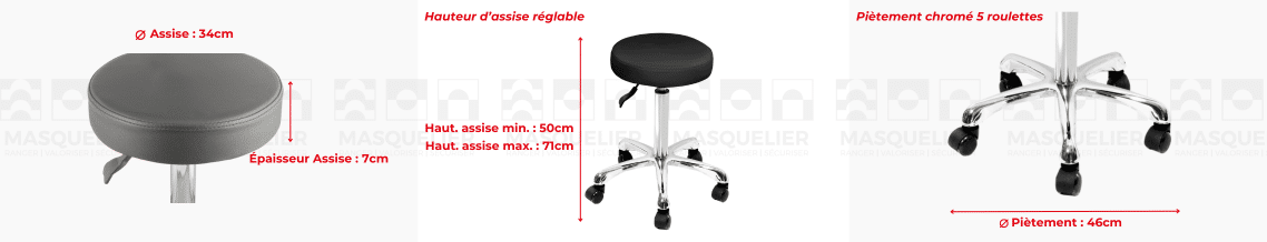 Ce tabouret est un siège avec des roulettes qui le rendent facile à déplacer. Il est souvent utilisé dans les environnements de travail tels que les magasins, les bureaux, les laboratoires, les salles de classe et les ateliers pour une meilleure flexibilité et mobilité. Il est conçu pour fournir un confort et un soutien approprié pour la posture assise. Il est particulièrement utile pour les tâches qui impliquent de se déplacer fréquemment d’un endroit à l’autre, afin de faciliter les déplacements entre différents postes de travail ou pour travailler dans une posture assise ergonomique.